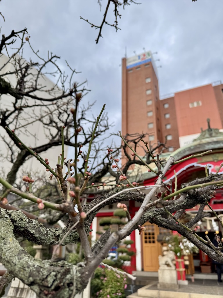 境内の梅は、これから少しずつ花を増やし、