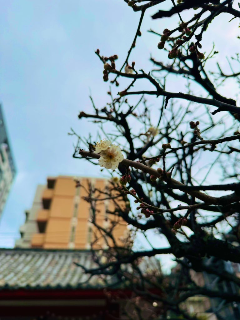 菅原神社の御神木「飛梅」に、今年最初の花が咲きはじめました。